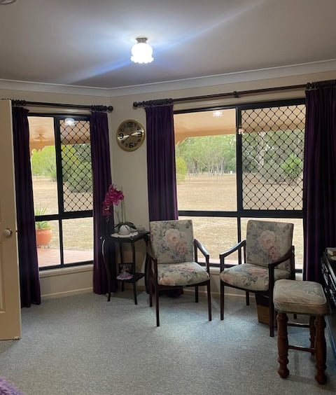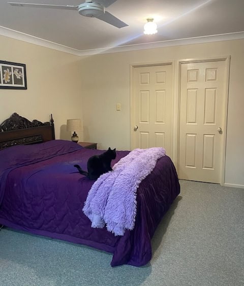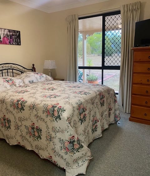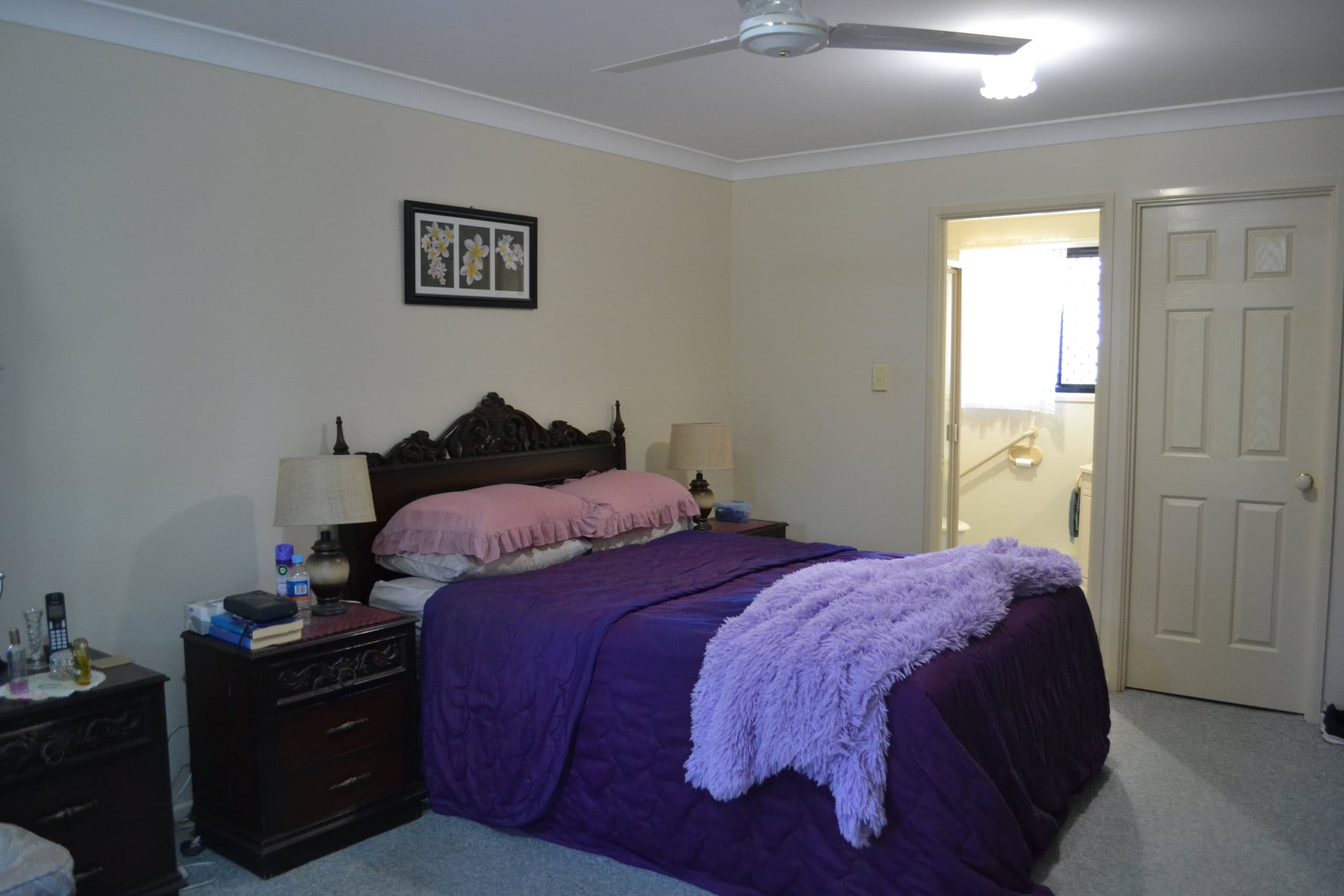 Main bedroom has ensuite and walk-in robe, carpet and large window outlook to lovely front yard views