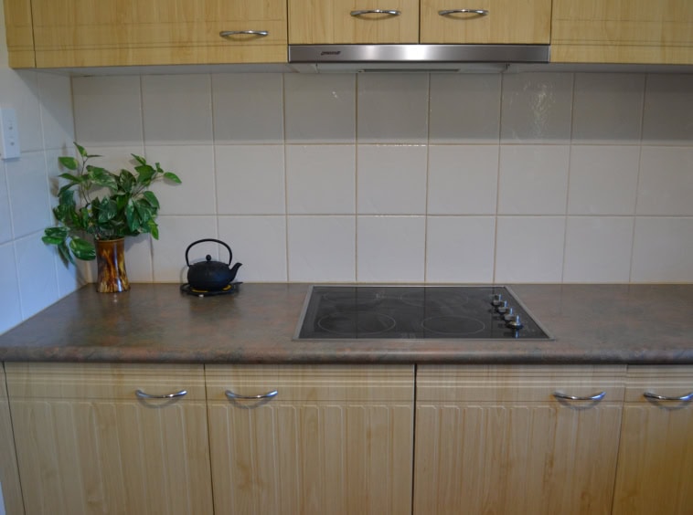 Kitchen with lge walk-in pantry, Smeg dishwasher, electric stove top and oven, ample cupboard space and lge window to enjoy the lovely sunsets