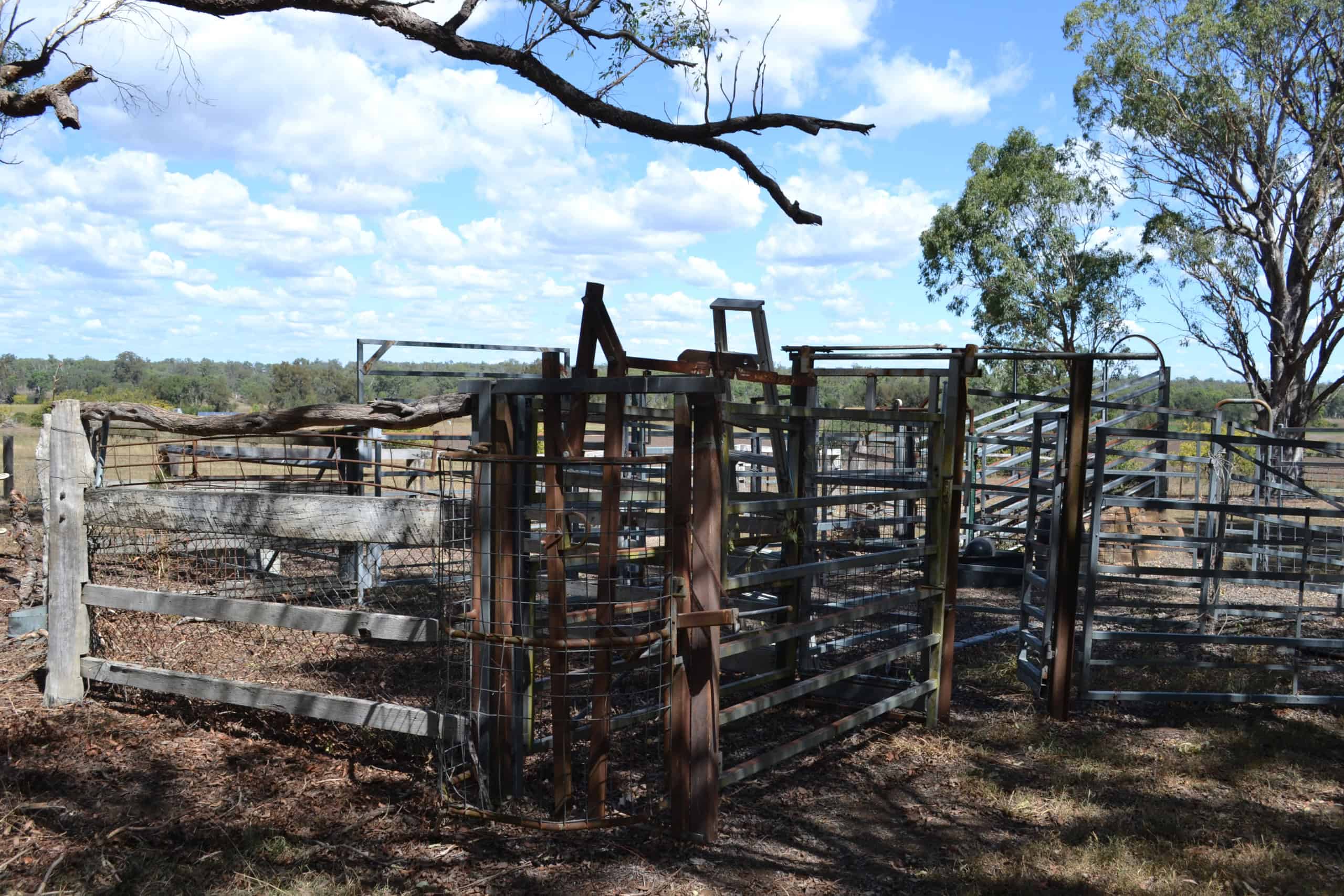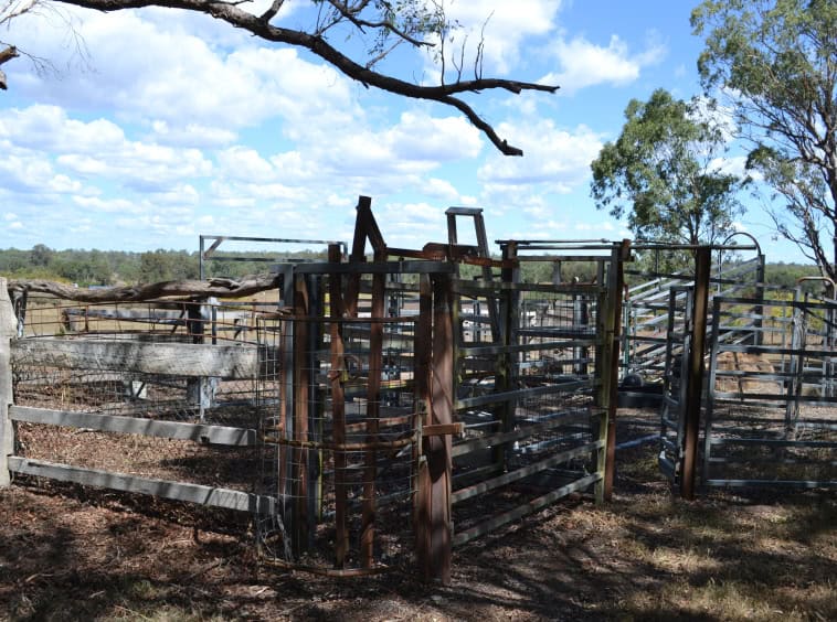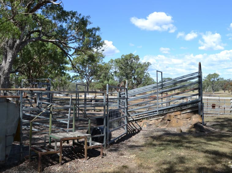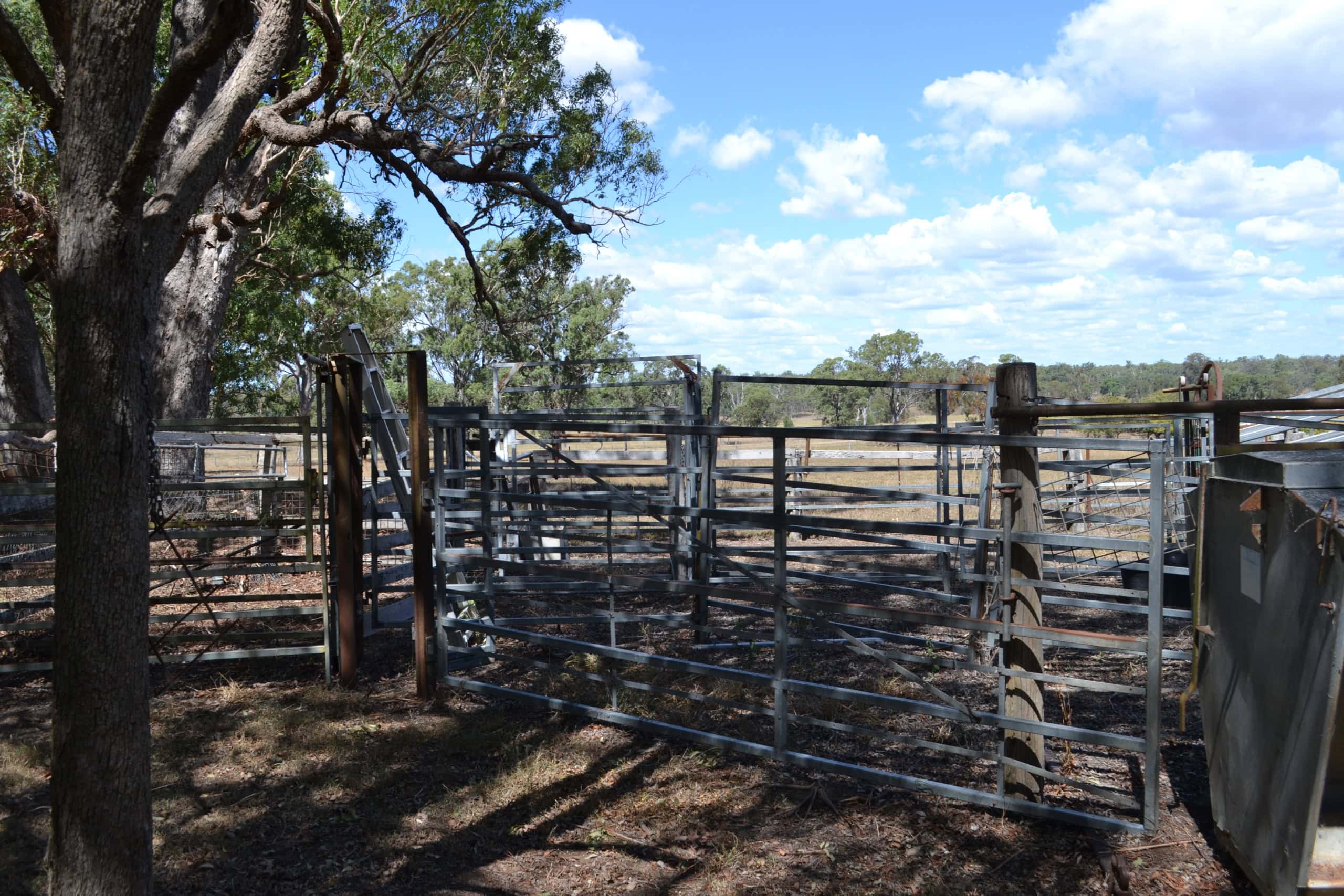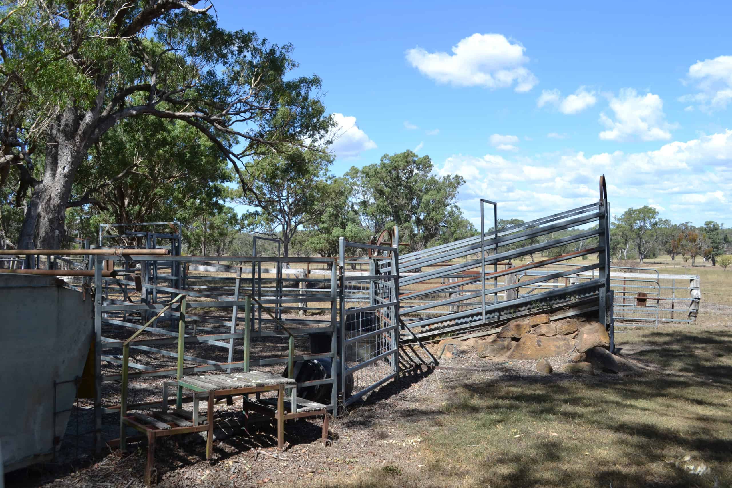 Steel cattle yards, head bail and loading ramp