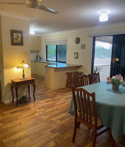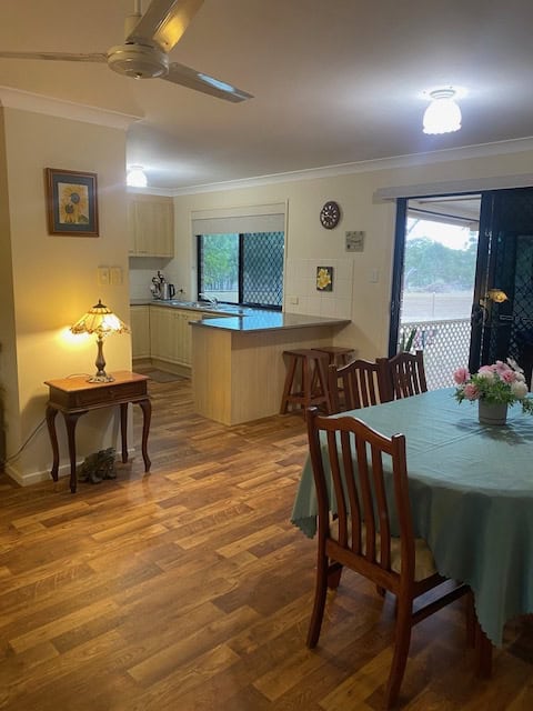 Kitchen/Dining/Living with timber look vinyl flooring